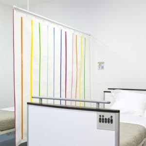 Nous continuons de participer aux efforts d’équipement, notamment des SSPI et des chambres doubles non-équipées (ou de rideaux textiles favorisant les contaminations croisées) en installant notre gamme suspendue bio-nettoyable et nettoyable vapeur, celle du succès partagé avec nos clients sur la France et Benelux.